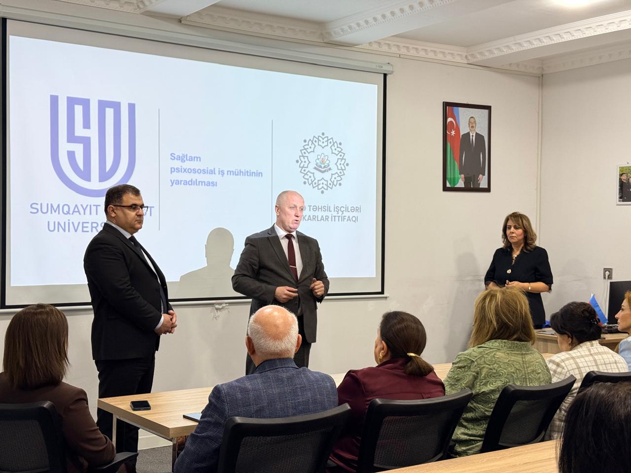 Aprelin 22-də Ümumdünya Əməyin Mühafizəsi Günü münasibətilə Sumqayıt Dövlət Universitetində (SDU) “Sağlam psixososial iş mühitinin yaradılmasını təmin edə... Davamı