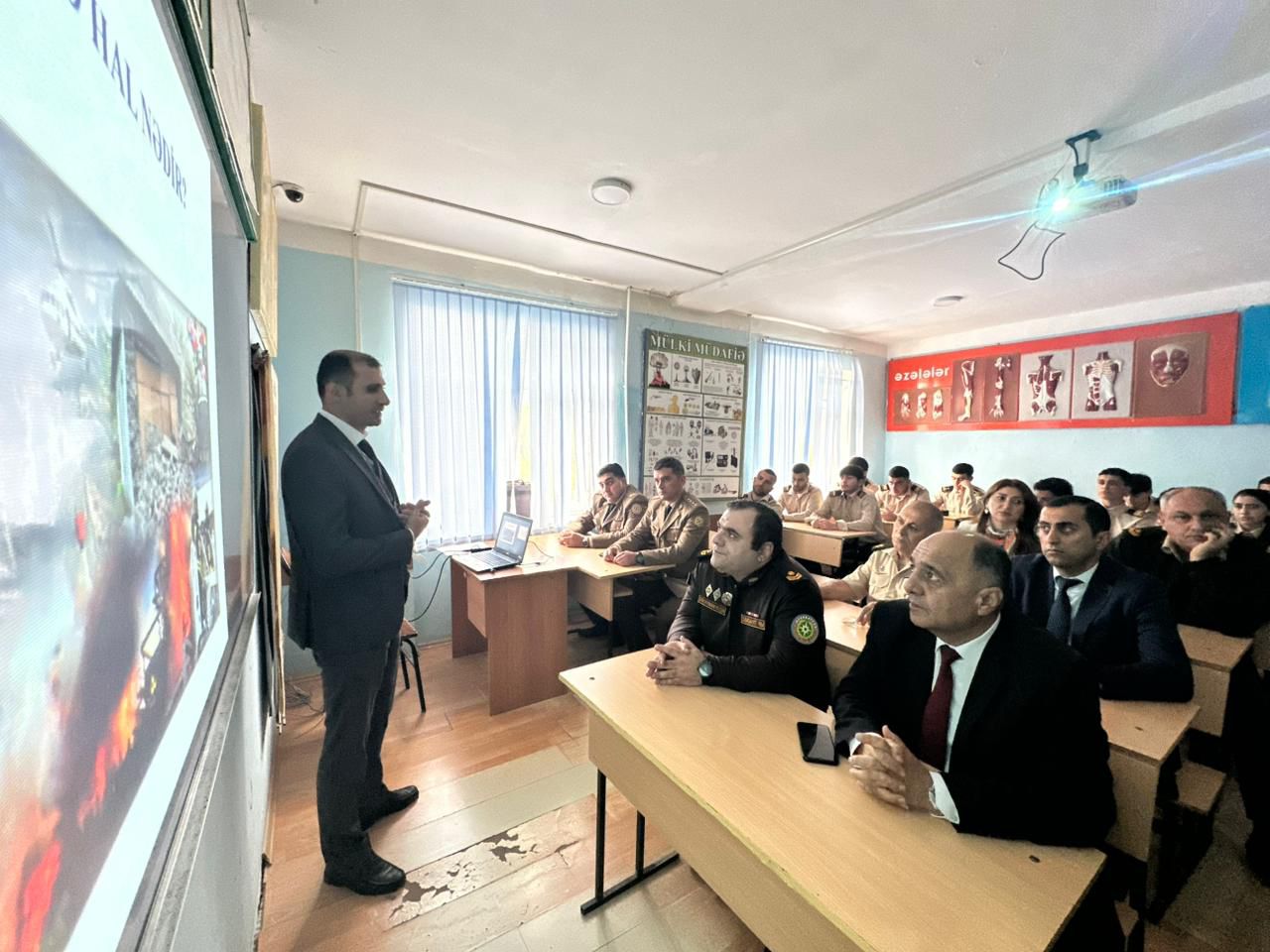 “Əhalinin fövqəladə hallar zamanı mühafizəsinin təşkili” mövzusunda nümunəvi dərs keçirilib