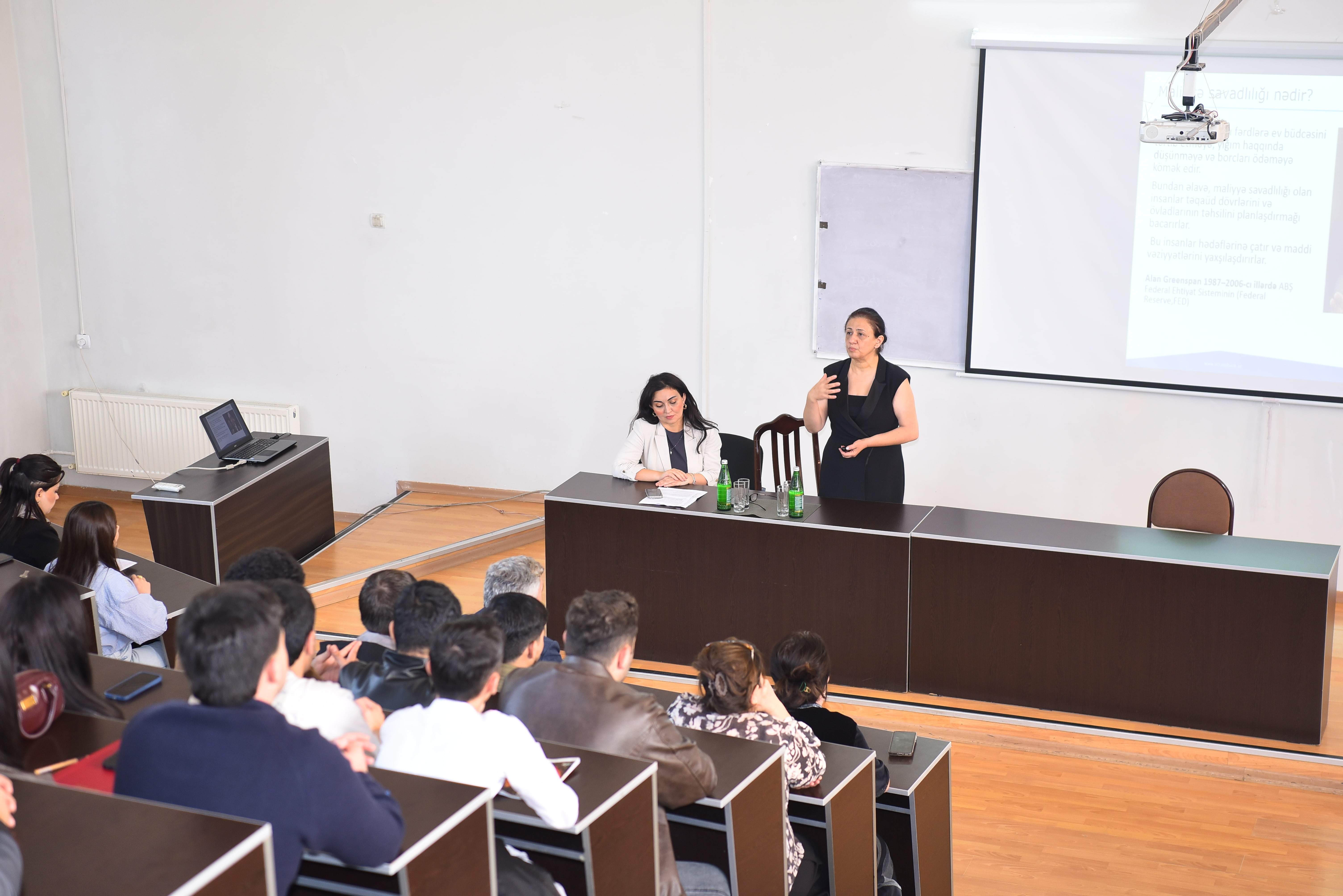Tədbiri fakültə dekanı, dosent Loğman Abdullayev açaraq iştirakçıları salamlayıb və təlimin əhəmiyyətindən danışıb. Qeyd edib ki, AccessBank tərəfindən maliyyə mövzusunda təşkil olunan bu tədbir tələbələrin peşə yönümünün dəstəklənməsi baxımından mühüm əhəmiyyət kəsb edir. Eyni zamanda tələbələrin gələcək karyera inkişafına müsbət təsir göstərərək, onların praktik bilik və bacarıqlarının formalaşmasına töhfə verir. Dekan həmçinin AccessBank ilə universitet arasında mövcud əməkdaşlıq və tələbələrin bankda təcrübə keçmək imkanları barədə də danışıb. Sonra AccessBankın Təhsil və inkişaf şöbəsinin rəhbəri Xumar Hüseynova “Maliyyə savadlılığı”, Biznes partnyorluq şöbəsinin rəhbəri İlhamə Rüstəmli “Davamlı inkişaf, karyera planlaması”, PR və daxili kommunikasiyalar üzrə meneceri Ülviyyə İsmayılova isə “Sahibkarlar üçün PR: Lüks deyil, zərurətdir” mövzularında təqdimatla çıxış ediblər. Məruzəçilər maliyyə savadlılığının şəxsi inkişaf və karyera planlaşdırılmasında rolu, düzgün maliyyə qərarlarının qəbul edilməsi, təhlükəsiz bank əməliyyatları, eləcə də rəqəmsal bankçılıq xidmətlərindən düzgün istifadə və ictimaiyyətlə əlaqələrin əhəmiyyəti barədə məlumat veriblər. Təlim zamanı tələbələrin maliyyə bazarları, şəxsi büdcənin idarə olunması, bank xidmətlərindən səmərəli istifadə və müxtəlif layihələrlə bağlı çoxsaylı sualları cavablandırılıb.