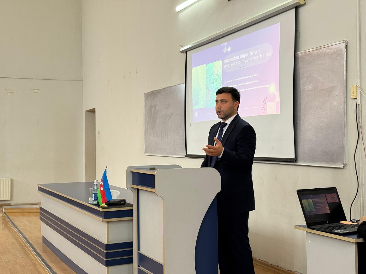 Riyaziyyat fakültəsinin dekanı, dosent Xalidə Həsənova süni intellektdən istifadənin müəllim-tələbə münasibətlərində rolundan danışıb. Sonra İctimaiyyətlə əlaqələr və kommunikasiya şöbəsinin müdiri Elgün Rüstəmlilər çıxış edərək, rəqəmsal transformasiyanın təhsildə və kommunikasiya sahəsində yaratdığı imkanlardan danışıb. Daha sonra SMM üzrə mütəxəssis Günel Abdullayeva çıxış edərək sosial medianın müasir dövrdə kommunikasiya və sosial media marketinqində rolundan danışıb.