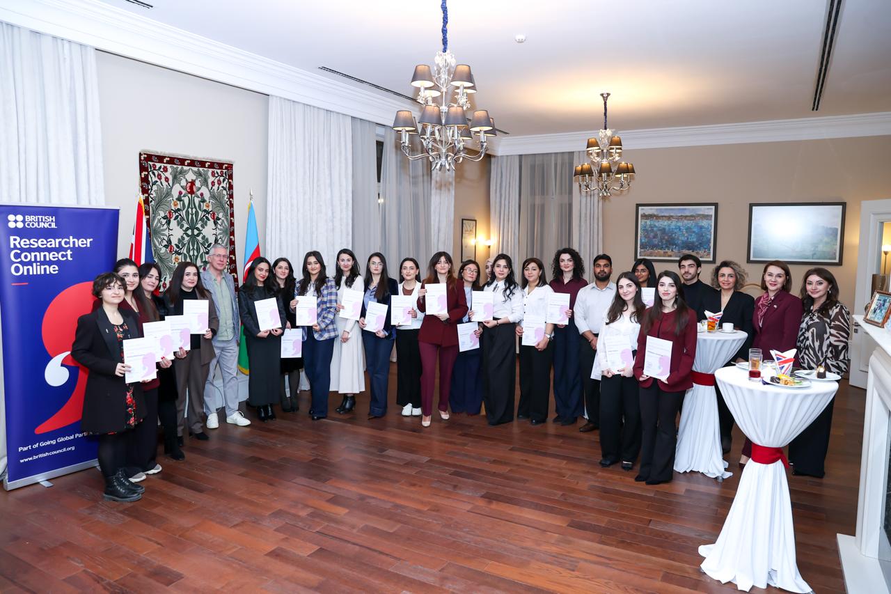 “Researcher Connect Online” proqramının ilk buraxılışının uğurla başa çatması münasibətilə Böyük Britaniyanın Azərbaycandakı Səfirinin Rezidensiyasında sertifikatların təqdimetmə mərasimi keçirilib. Proqram iştirakçıları Böyük Britaniyanın Azərbaycan Respublikasındakı Fövqəladə və Səlahiyyətli Səfiri cənab Fergus Auldun ev sahibliyi etdiyi xüsusi qəbulda iştirak ediblər. Tədbirdə, həmçinin Böyük Britaniya Şurasının ölkə üzrə direktoru xanım Nərgiz Hacıyeva da iştirak edib.