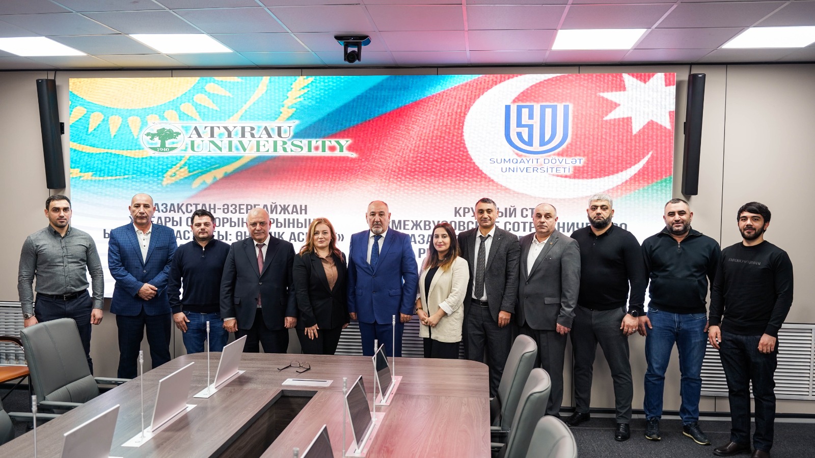 Fevralın 4-də Qazaxıstan Respublikasının Xalel Dosmuxamedov adına Atırau Universitetində “Qazaxıstan və Azərbaycan arasında universitetlərarası əməkdaşlıq: Regional aspekt” mövzusunda beynəlxalq dəyirmi masa keçirilib. Tədbir Azərbaycan və Qazaxıstan arasında təhsil, elm, iqtisadiyyat və mədəniyyət sahələrində əməkdaşlığın daha da gücləndirilməsi məqsədilə təşkil olunub.