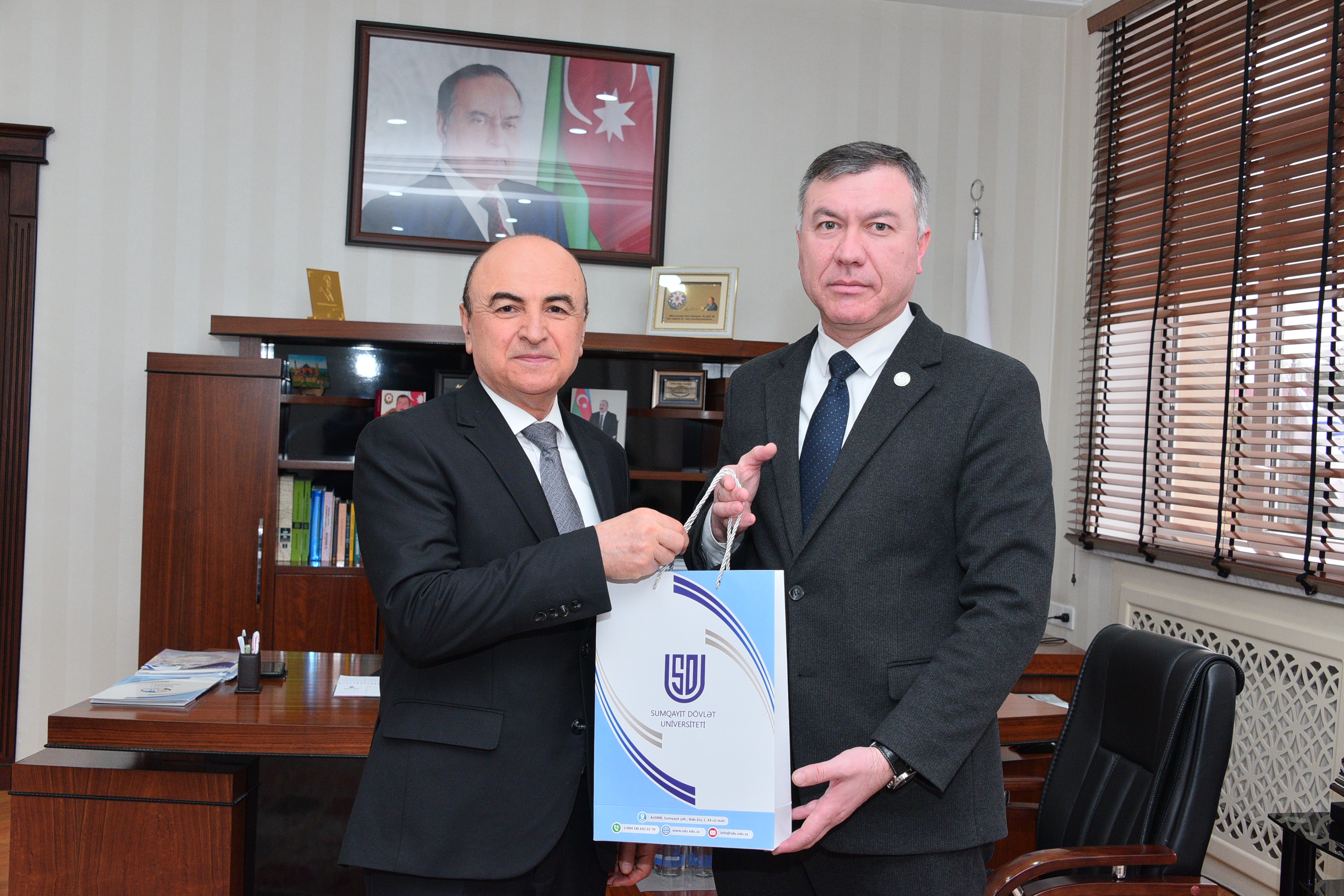Fevralın 4-də Özbəkistan Dövlət Dünya Dilləri Universiteti ilə Sumqayıt Dövlət Universiteti arasında ikitərəfli görüş keçirilib. SDU-nun rektoru v.i.e., AMEA-nın müxbir üzvü Əminağa Sadıqov qonaqları salamlayaraq son illər Azərbaycan və Özbəkistan arasında strateji tərəfdaşlığın daha da möhkəmləndiyini, bu müsbət dinamikanın elm və ali təhsil sahəsində əməkdaşlıq üçün geniş imkanlar yaratdığını vurğulayıb. O, universitetlərarası əlaqələrin akademik mübadilə, birgə elmi-tədqiqat layihələri və beynəlxalq proqramlar çərçivəsində inkişaf etdirilməsinin əhəmiyyətini xüsusi qeyd edib. Özbəkistan Dövlət Dünya Dilləri Universitetinin rektoru İlhomjon Tuxtasinov göstərilən yüksək qonaqpərvərliyə görə təşəkkürünü bildirib. O, rəhbərlik etdiyi universitetin fəaliyyəti, tədris proqramları, mövcud maddi-texniki baza, beynəlxalq əlaqələr və tələbələr üçün yaradılmış təqaüd imkanları barədə ətraflı məlumat verib. Rektor iki universitet arasında əməkdaşlığın qurulmasının hər iki tərəf üçün faydalı olacağını, xüsusilə müəllim və tələbə mübadiləsi, eləcə də birgə elmi və akademik layihələr baxımından böyük perspektivlər vəd etdiyini qeyd edib. Görüş çərçivəsində Sumqayıt Dövlət Universiteti ilə Özbəkistan Dövlət Dünya Dilləri Universiteti arasında əməkdaşlıq müqaviləsi imzalanıb. Sonda qonaqlar SDU-nun Heydər Əliyev Mərkəzi ilə tanış olub, Ümummilli Lider Heydər Əliyevin həyatı və zəngin siyasi fəaliyyəti barədə ətraflı məlumat alıblar.