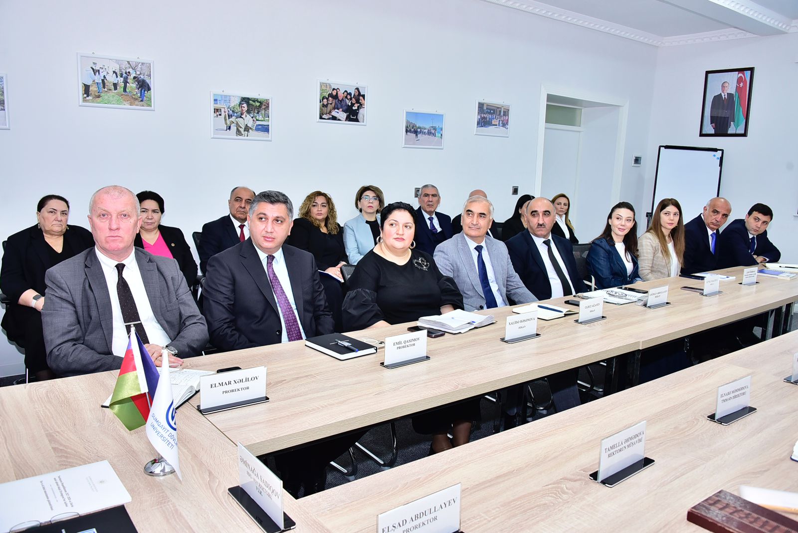 A wide-ranging deliberation was held at Sumgayit State University (SSU) on the issues discussed at the meetings held by the Ministry of Science and Education on September 19 and October 3 of this year with the participation of rectors of higher education institutions. Acting rector of the university, corresponding member of ANAS, Professor Aminaga Sadigov, vice-rectors, faculty deans, heads of departments and other structures attended at the meeting. Professor Aminaga Sadigov opened the event and said that the meeting aims to identify the tasks arising from the issues discussed and decisions made at the meetings of the Ministry of Science and Education's "2025/2026 Academic Year: Innovations and Goals in Science and Higher Education" project, as well as the "Socio-Economic Development Strategy of the Republic of Azerbaijan in 2027–2030" project dedicated to science and higher education. He noted that the Minister of Science and Education Emin Amrullayev, rectors of all higher education institutions of our country, and other officials participated in the meetings in question. He noted that at the first meeting, a report was heard on the topic of "Strengthening the ecosystem of science and higher education", information was provided on the results achieved in the field of science and higher education in 2022-2025 and the directions of activities planned until 2030. In the second session, priorities such as increasing the coverage and accessibility of higher education, modernizing content and quality indicators, strengthening international competitiveness and mobility, developing science and higher education within the framework of public-private partnerships, strengthening scientific potential, and ensuring financial sustainability were highlighted. In addition, proposals were put forward to align the strategic development plans of higher education institutions with the country's socio-economic goals, expand the opportunities for international cooperation of universities, and stimulate result-based scientific research. An exchange of views was held on determining priorities for the coming period, forming a higher education ecosystem that meets modern requirements, and further strengthening the role of science in the development of society. Then, Aminaga Sadigov spoke about the tasks of Sumgayit State University in the current academic year and its plans for the coming years. He noted that the “Digital Development Concept in the Republic of Azerbaijan” and the “Artificial Intelligence Strategy of the Republic of Azerbaijan for 2025-2028” approved by President Ilham Aliyev set important tasks for universities to prepare highly qualified personnel in relevant fields.