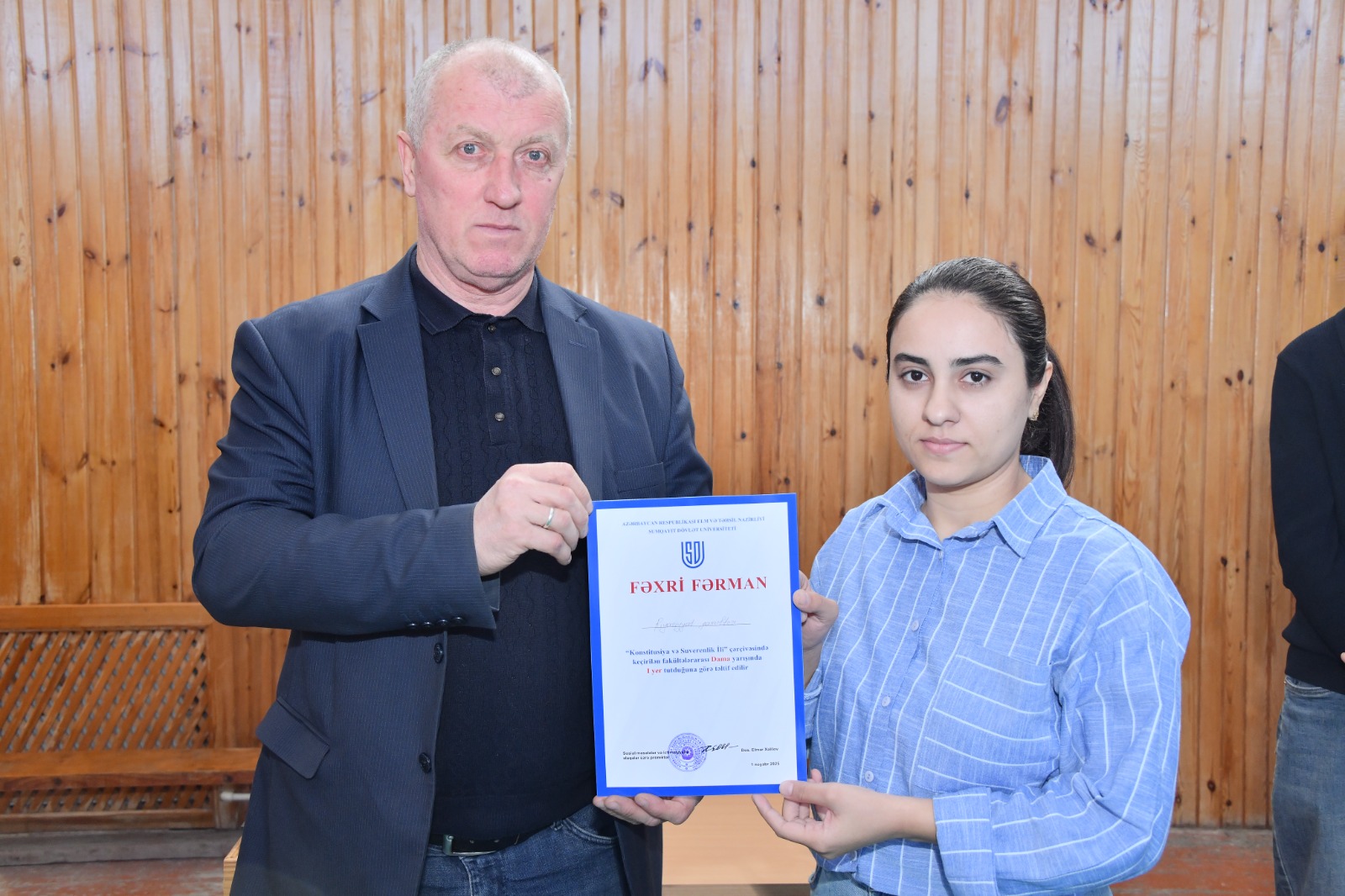 At the opening of the event, the university"s vice-rector for Social Affairs and Public Relations, associate professor Elmar Khalilov addressed the participants and welcomed them, emphasizing that sports play an important role in the formation of a healthy lifestyle among young people and in the effective use of leisure time. In the competition, 7 teams consisting of students from Sumgayit State University and Sumgayit State Technical College competed for the first place. According to the results of the intense and interesting competition, the university"s Faculty of Mathematics took 1st place, the Faculty of Nature took 2nd place, and the team from the Faculty of Philology took 3rd place. The winners were awarded certificates.