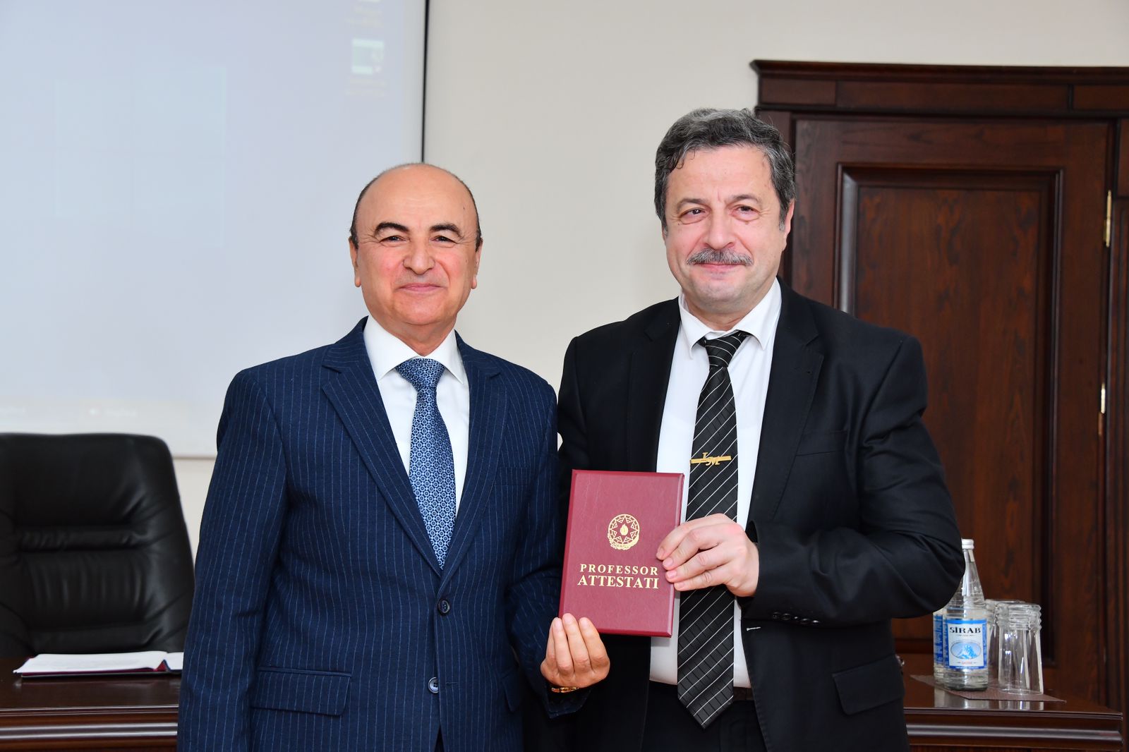 On November 5, the next meeting of the Scientific Council of Sumgayit State University (SSU) was held. Acting Rector of the university, corresponding member of ANAS, Professor Aminaga Sadigov chaired the meeting. He greeted the members of the Council and noted that President Ilham Aliyev's speech at the event dedicated to the 80th anniversary of the establishment of the Azerbaijan National Academy of Sciences set great tasks for scientists. Aminaga Sadigov drew attention in the speech of the head of state, to the special importance of the high attention and care shown to the Azerbaijani language, its literary norms and rules. Aminaga Sadigov said in his speech that every citizen, especially those working in the fields of science and education, should pay special attention to preserving the purity of our language guided by these profound thoughts of the President. Then, scientific secretary of the university, Professor Mukhtar Samedov brought to the attention of the participants the issues on the Council's agenda. Vice-Rector for Science and Innovations, Associate Professor Elshad Abdullayev spoke about the forecast plan for student enrollment at SSU in the 2026/2027 academic year. He stated that in preparing the forecast plan for the coming years, it is important to conduct a more in-depth analysis of labor market demand and to draw up a justified and purposeful forecast plan in accordance with the results of the research conducted. For this purpose, relevant instructions have been given to department heads and faculty deans. It was recommended that surveys be sent to industrial enterprises operating in Sumgayit city and surrounding regions in the coming years, that these enterprises' needs for specialists be studied, and that the information obtained be taken into account in preparing a forecast plan. The implementation of coordination activities in this direction has been entrusted to the deans of the faculties and the director of the Educational and Methodological Center, associate professor Elnara Mammadova. Later, Vice-Rector for Social Issues and Public Relations, Associate Professor Elmar Khalilov reported on the discussion of the "Social Policy Concept" of Sumgayit State University. After the discussions, the "Social Policy Concept" of Sumgayit State University was approved. A specialist in the Quality Assurance and Strategy Department, Shams Shirinova spoke about the implementation of the work envisaged in the Action Plan for the 2024/2025 academic year in accordance with the Strategic Development Plan of SSU. Vice-Rector for Science and Innovations, Associate Professor Elshad Abdullayev reported on the approval of the Action Plan for the 2025/2026 academic year in accordance with the Strategic Development Plan of SSU. The Action Plan for the 2025/2026 academic year has been approved in accordance with the Strategic Development Plan of SSU. Later, the topics and scientific supervisors of the doctoral students' dissertations were approved, and decisions were made to grant publishing rights (license) to teaching materials.