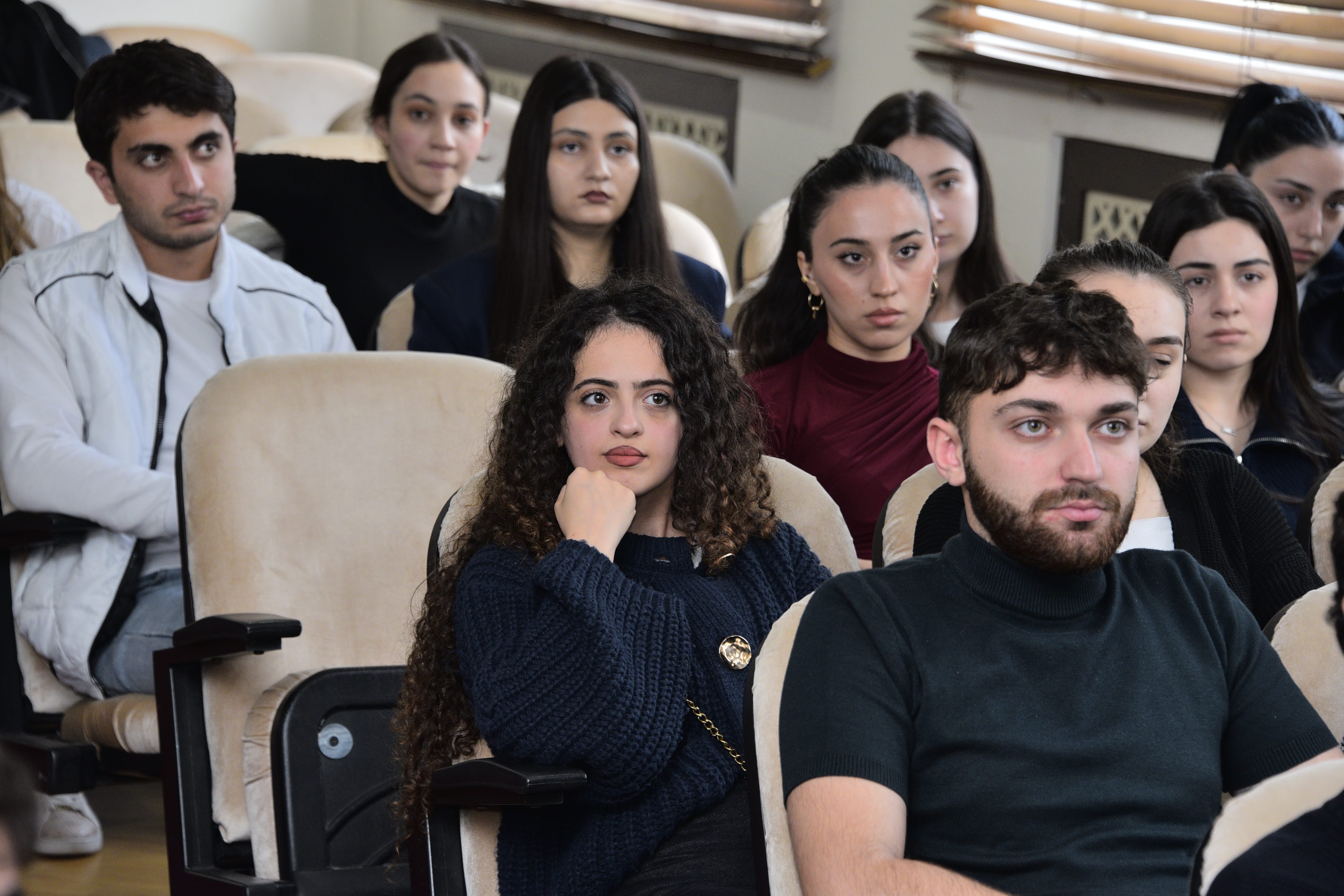On November 27, a meeting was held at Sumgayit State University (SSU) in order to provide information about the specialties offered by ADA University at the master’s level, new admission rules and scholarship programs. Vice-rector for Social Affairs and Public Relations, associate professor Elmar Khalilov opened the event, welcomed the guests and the participants and spoke about the joint cooperation between SSU and ADA University. He provided information about the education opportunities of Sumgayit State University, as well as its position in the international ranking. The Director of the Teaching Methodological Center, doctor of philosophy in economic, Elnara Mammadova stated that modern teaching strategies implementing at SSU play a role in students’ future career success. Then, an employee of the Student Admission Department of ADA, Mahnur Abbasova made a detailed presentation about the academic activity of the university, teaching model, master’s programs, new admission requirements, and scholarship opportunities. She also gave an information about international cooperation relations of ADA university, the innovative environment created for students and career support mechanisms. After that, a lecturer of ADA University, Aygun Huseynli gave a presentation about the topic of “Fundamentals of Academic Writing”. She brought to the attention of the participants important nuances such as the structure of academic writing, rules of working with resources, citation principles and formation of a scientific style. The event proceeded in an interactive format. Eventually, gifts were presented to active students.