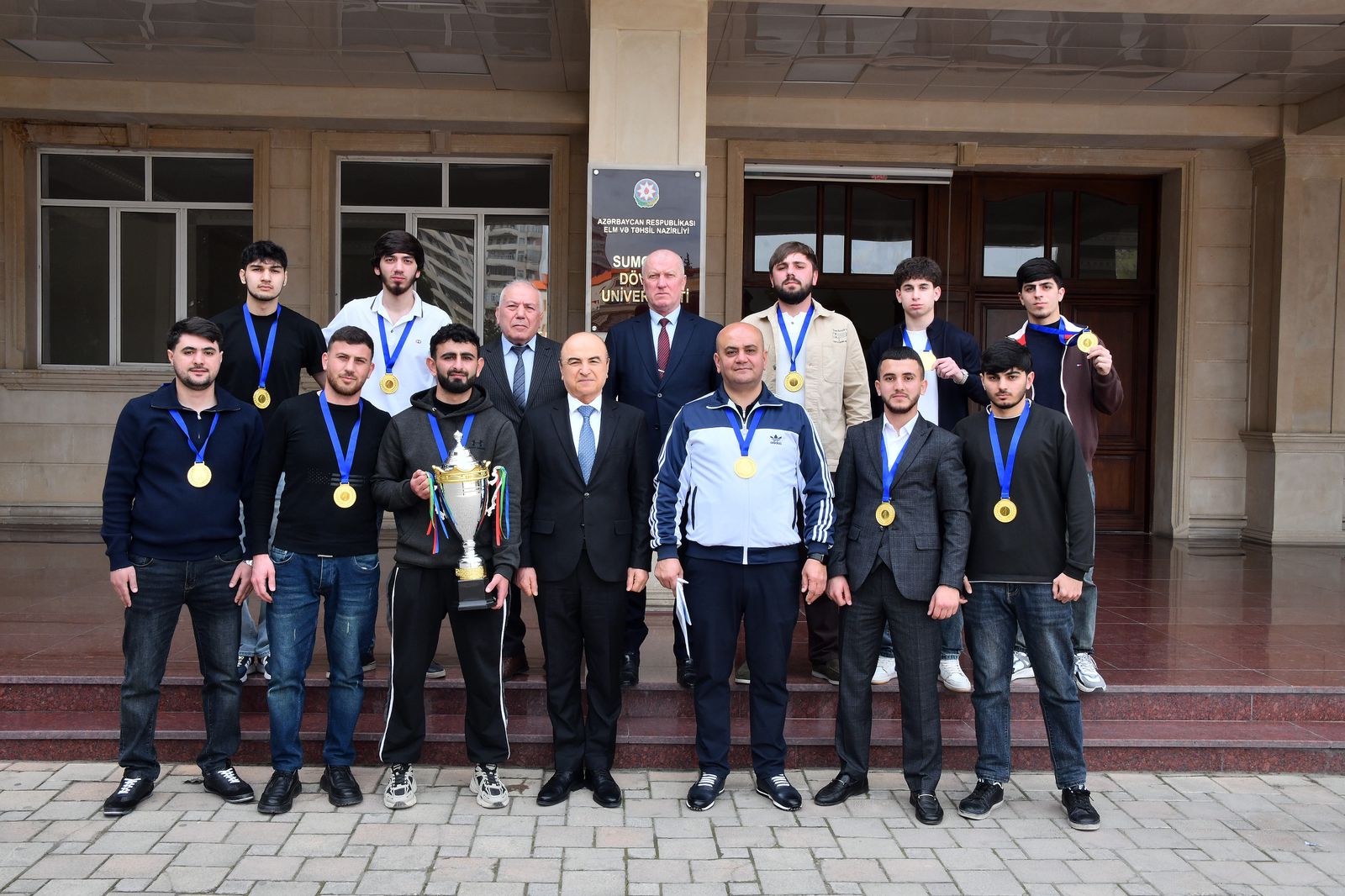 The “Novruz Cup” regional futsal tournament among students of higher and secondary specialized educational institutions has concluded. The tournament is organized by the Ministry of Science and Education of the Republic of Azerbaijan, the Public Union of the Azerbaijan Student Football Federation, and with the support of the Association of Football Federations of Azerbaijan. It should be noted that in the games organized at the Shirvan State College of Economics and Humanities in the southern region, teams from Sumgayit State University, Lankaran State University, Shamakhi State Regional College, Shirvan State College of Economics and Humanities, Lankaran State College of Humanities, and Goychay State College of Management and Technology competed. Based on the results of the games, the Sumgayit State University team was awarded 1st place. On March 6, acting rector of Sumgayit State University, corresponding member of ANAS, Aminaga Sadigov received the team and congratulated them on their victory.