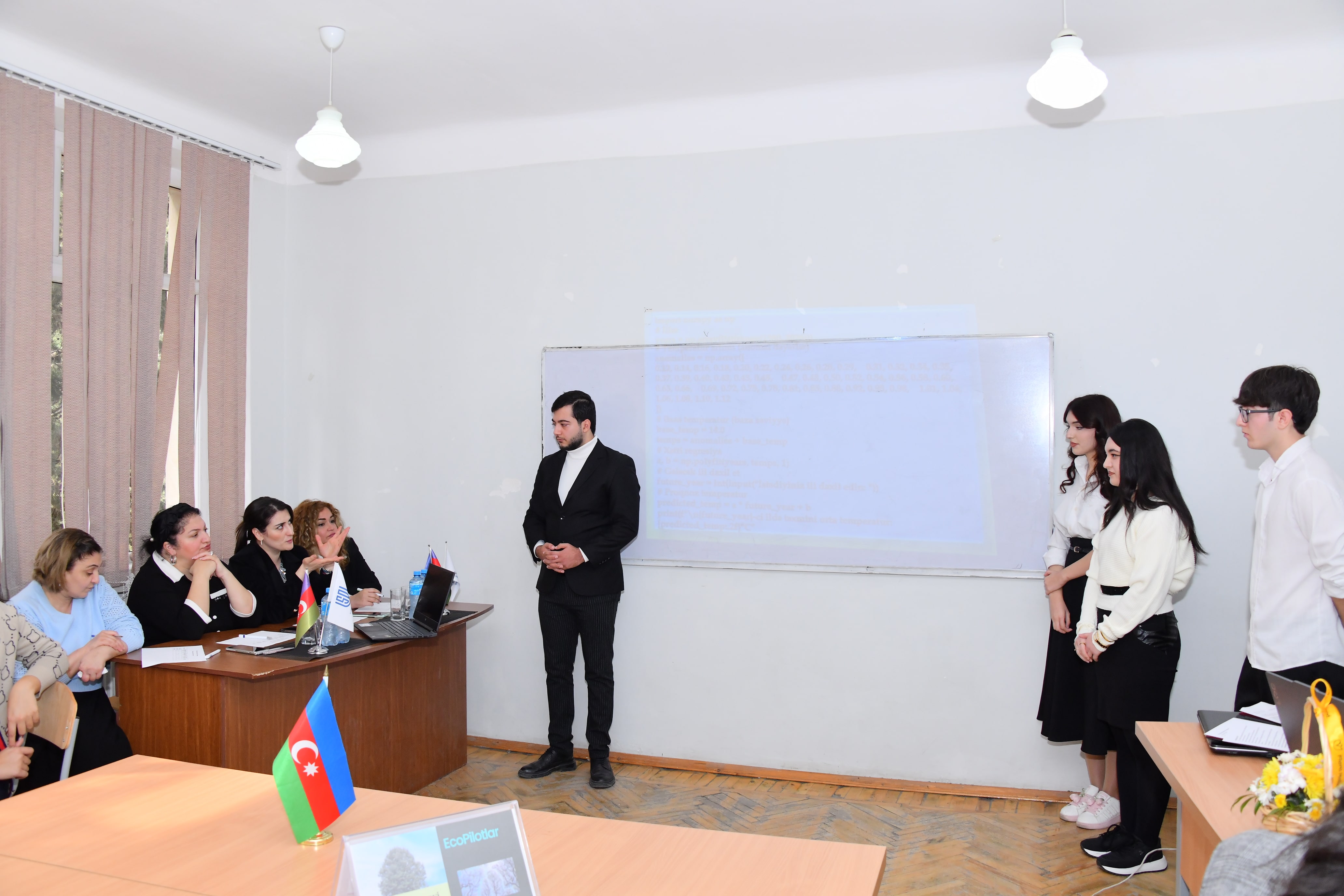 Noyabrın 14-də Riyaziyyat fakültəsinin Riyaziyyat və informatikanın tədrisi texnologiyası kafedrası və Tələbə Elmi Cəmiyyətinin birgə təşkilatçılığı ilə “Python ilə ekoloji layihələr” adlı müsabiqə təşkil olunub. İki mərhələdən ibarət olan müsabiqədə “Biokodçular”, “Ekopilotlar” və “Ekohackerlər” komandaları Python proqramlaşdırma dilindən istifadə edərək ətraf mühit problemlərinin həllinə yönəlmiş innovativ layihələr təqdim ediblər. Birinci mərhələdə komandalar əvvəlcədən hazırladıqları ekoloji yönümlü layihələri nümayiş etdirib, münsiflər isə təqdimatları qiymətləndirərək iştirakçılara suallar ünvanlayıblar. İkinci mərhələ sual-cavab raundu şəklində keçirilib və hər komandaya həm Python, həm də ekologiya mövzularını əhatə edən 5 ümumi sual təqdim olunub. Münsiflərin qərarına əsasən “Biokodçular” komandası müsabiqənin qalibi elan olunaraq mükafatlandırılıb. Tədbirin sonunda Riyaziyyat fakültəsinin dekanı, dosent Xalidə Həsənova çıxış edərək iştirakçıları təbrik edib. O, tələbələrin ekoloji problemlərin həllinə texnoloji yanaşmanı tətbiq etmək bacarığını yüksək dəyərləndirib və bu kimi təşəbbüslərin davamlı olmasının vacibliyini vurğulayıb.