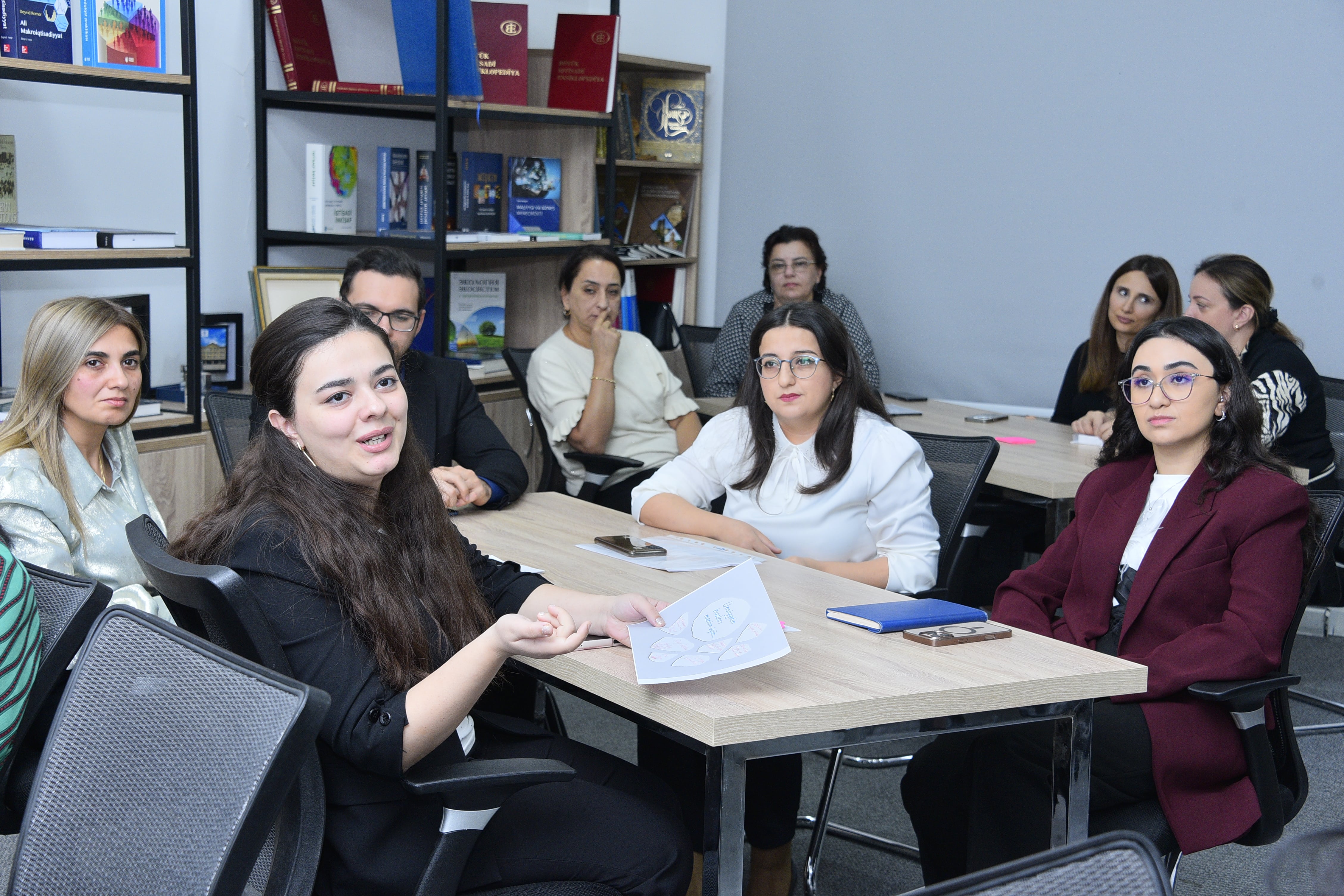 Noyabrın 27-də Sumqayıt Dövlət Universitetində (SDU) Həmkarlar İttifaqı Komitəsi və İnsan Resursları şöbəsinin birgə təşkilatçılığı ilə “Effektiv ünsiyyət və müəllimlik bacarıqları” mövzusunda təlim keçirilib. Tədbiri açan SDU-nun Sosial məsələlər və ictimaiyyətlə əlaqələr üzrə prorektoru, dosent Elmar Xəlilov belə təlimlərin müəllimlərin peşəkar inkişafında mühüm rol oynadığını vurğulayaraq, müəllim–tələbə kommunikasiyasının əhəmiyyəti və emosional yanaşma ilə səmərəli ünsiyyət qurulması məsələlərinə toxunub. Sonra Tədris Metodiki Mərkəzin əməkdaşı, təlimçi Aynurə Bağırova çıxış edərək, ünsiyyətin əsas prinsipləri, fəal dinləmə texnikaları, emosional intellektin kommunikasiya prosesindəki rolu, nitqin strukturlaşdırılması və auditoriya ilə effektiv əlaqə qurma üsulları kimi mövzular barədə danışıb. O, həmçinin bədən dili, jestlər, mimikalar və göz təması kimi elementlərin insan münasibətlərinin formalaşmasındakı əhəmiyyətini vurğulayıb. Təlim interaktiv formatda davam edərək, mövzu ilə bağlı maarifləndirici oyunlar təşkil olunub, iştirakçıların sualları cavablandırılıb, praktik nümunələr üzərində müzakirələr aparılıb.