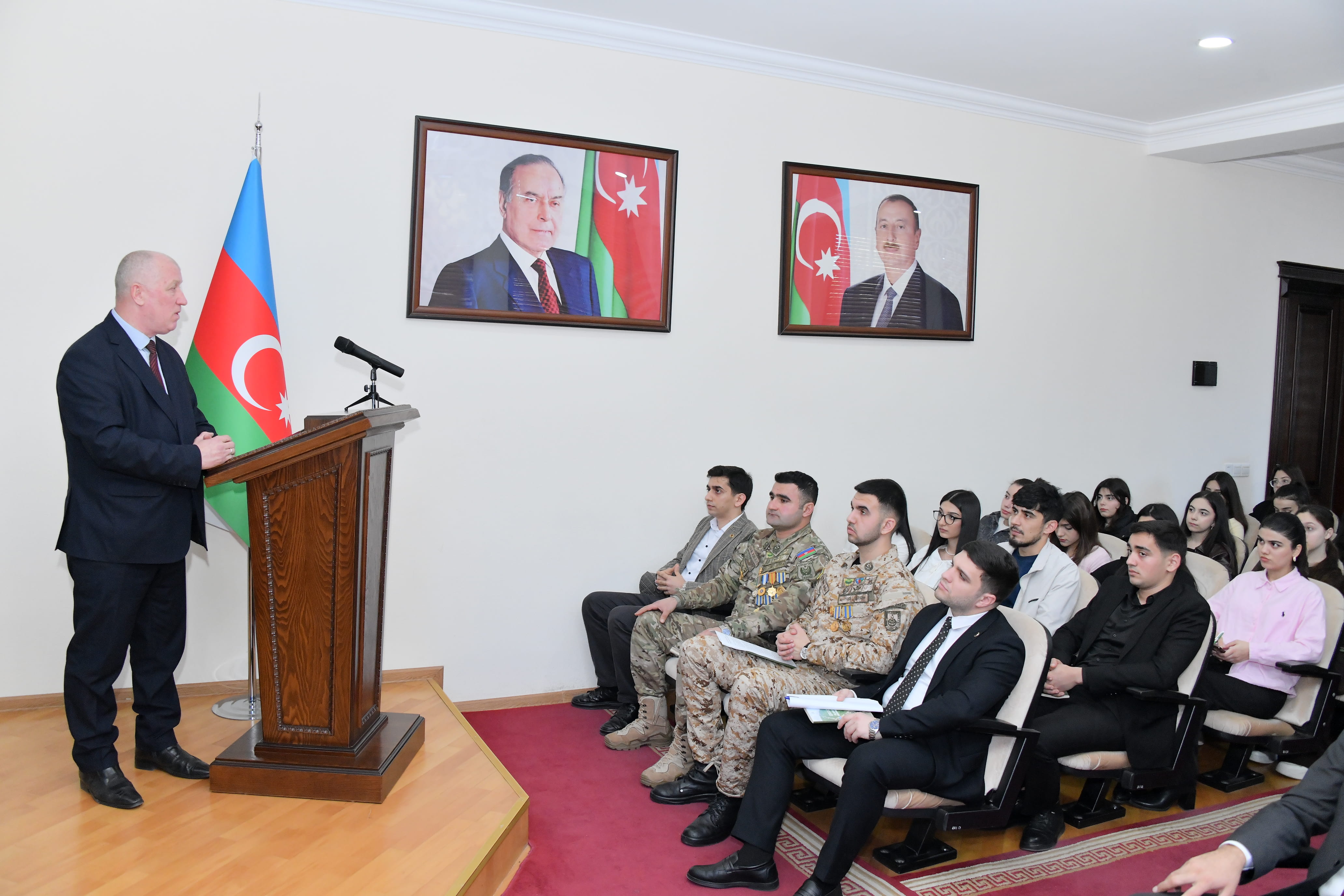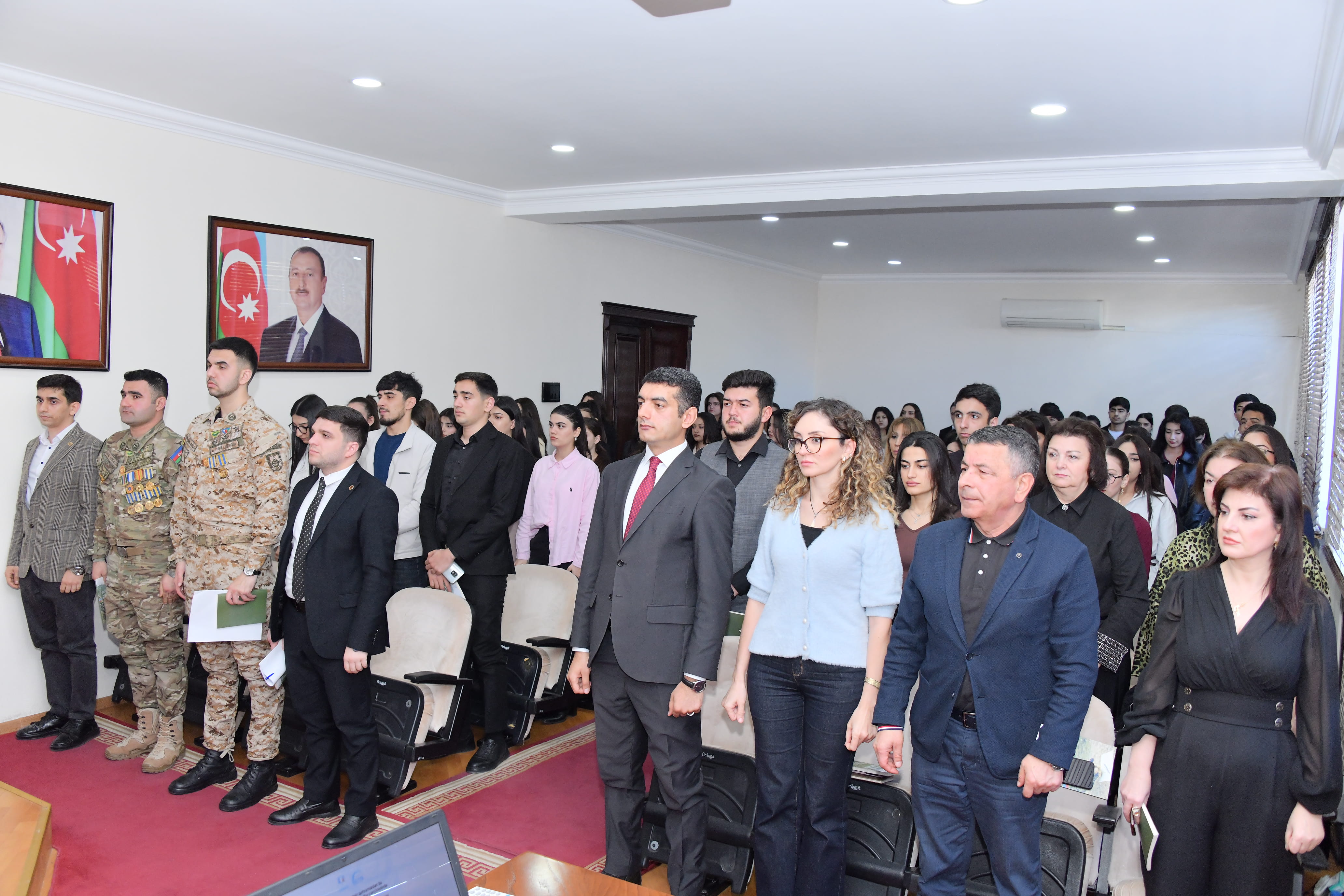 Universitetimizin qaziləri, Riyaziyyat fakültəsinin tələbəsi, peşəkar hərbçi kimi 44 günlük müharibədə müxtəlif rayonlarımızın azad edilməsində iştirak edərək Şuşa qələbəsinədək gedən Rahid Xəlilov, Təbiət elmləri fakültəsinin tələbəsi Hüsü Sarıyev çıxış ediblər.
