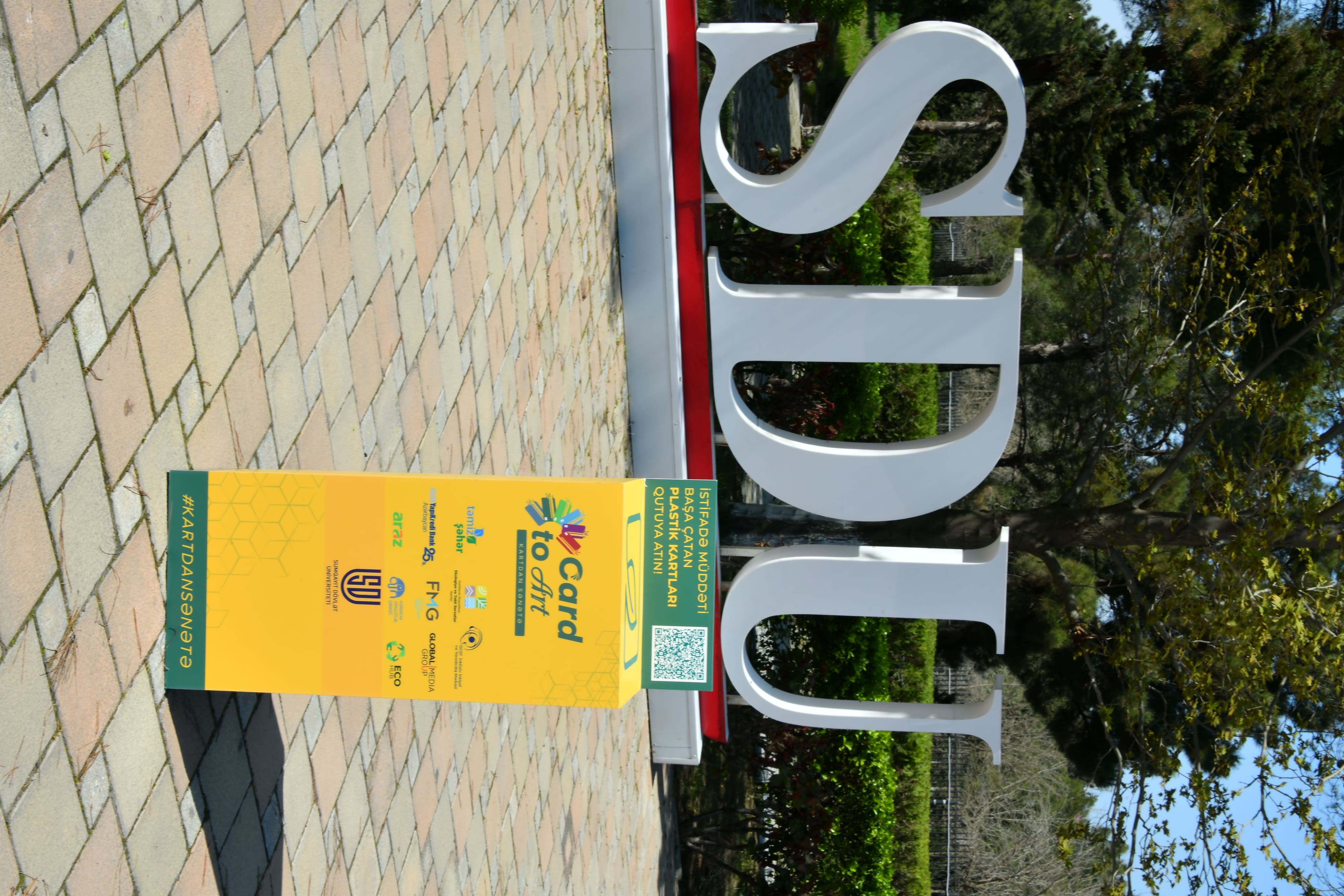 Aprelin 8-də Sumqayıt Dövlət Universitetində (SDU) Karyera və Məzunlarla iş Mərkəzinin təşkilatçılığı ilə “Card to Art” sosial layihəsinin təqdimatı baş tutub. “Təmiz Şəhər” ASC-nin təşəbbüsü ilə yaradılan, Yapı Kredi Bank Azərbaycanın tərəfdaş olduğu “Card to ART” (“Kartdan Sənətə”) sosial layihəsinin təqdimat mərasimi SDU Karyera və Məzunlarla iş Mərkəzinin direktoru Anar Dünyamalıyevin çıxışı ilə başladı. Mahiyyətində ekologiyamıza qayğı dayanan sosial layihəyə Sumqayıt Dövlət Universiteti əməkdaşları və tələbələrinin qoşulmasının yaddaqalan hadisə olduğunu deyən Mərkəz direktoru Universitetin “Təmiz Şəhər” ASC ilə əməkdaşlığından daha çox tələbələrin bəhrələndiyini bildirdi. “Təmiz Şəhər” ASC-nin şöbə müdiri Orxan Cabbarlı layihənin yaranma zərurəti barədə məlumat verdi. O, layihədə məqsədin sosial həyatımıza daxil olan müxtəlif təyinatlı plastik kartların istifadə müddəti başa çatandan sonra onların ekoloji mühitə ziyanvurma potensialından danışdı. Bildirildi ki, Layihənin məqsədi yararsız plastik kartların cəmiyyətimiz üçün faydalı etməkdir. Bunun üçün layihə çərçivəsində müxtəlif məkanlardakı qutularda toplanacaq plastik kartlar yaradıcı insanların əlində sənət əsərlərinə çevriləcək. O sənət əsərləri Heydər Əliyev Fondunun təşəbbüsü ilə yaradılan “Tullantıdan Sənətə” muzeyində təşkil ediləcək “Card to ART” sərgisində təqdim olunacaq.