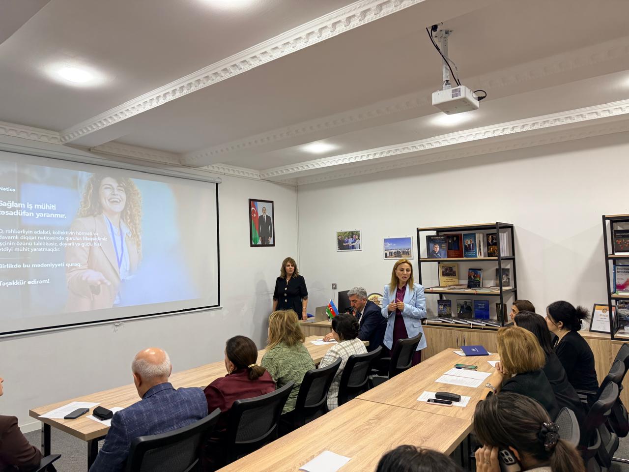 Aprelin 22-də Ümumdünya Əməyin Mühafizəsi Günü münasibətilə Sumqayıt Dövlət Universitetində (SDU) “Sağlam psixososial iş mühitinin yaradılmasını təmin edək!” mövzusunda maarifləndirici təlim keçirilib. Təlim universitetin Həmkarlar İttifaqı Komitəsinin (HİK) təşkilatçılığı ilə baş tutub. Tədbiri universitetin Sosial məsələlər və ictimaiyyətlə əlaqələr üzrə prorektoru, dosent Elmar Xəlilov açaraq təlimin əhəmiyyətindən bəhs edib. O, mövzunun aktuallığını vurğulayaraq bildirib ki, universitet mühiti yalnız təhsil məkanı deyil, eyni zamanda sağlam sosial münasibətlərin formalaşdığı bir platformadır. Qeyd edib ki, ziyalı kollektivdə çalışaraq cəmiyyət üçün savadlı və məsuliyyətli gənclər yetişdirilir və bu prosesdə sosiallaşma, effektiv kommunikasiya əlaqələrinin qurulması mühüm rol oynayır. Bu baxımdan şəffaflıq, güvən və səmimiyyət iş mühitinin əsas dəyərləri kimi xüsusi önəm kəsb edir. Prorektor çıxışında dahi şəxsiyyət Heydər Əliyevin dövlətçilik və insan amilinə verdiyi dəyərdən də bəhs edərək, ölkədə əmək hüquqlarının qorunması və sosial rifahın yüksəldilməsi istiqamətində formalaşdırılmış siyasətin bu gün də uğurla davam etdirildiyini diqqətə çatdırıb. O, həmçinin psixososial risk amilləri, iş yerində effektiv ünsiyyət və komandadaxili münasibətlərin tənzimlənməsi barədə də çıxış edib. Təlimdə HİK-in sədri Nemət İbayev çıxış edərək bildirib ki, Komitənin fəaliyyət planına uyğun olaraq hər il 28 Aprel – Ümumdünya Əməyin Mühafizəsi Günü münasibətilə müxtəlif mövzulara həsr olunan tədbirlər təşkil edilir. O, sağlam iş mühitinin formalaşdırılmasının əsas istiqamətlərinə toxunaraq qeyd edib ki, təhlükəsiz əmək şəraitinin yaradılması, işçi hüquqlarının qorunması, psixoloji dəstəyin təşkili, kollektiv daxilində sağlam münasibətlərin qurulması və maarifləndirmə fəaliyyətinin genişləndirilməsi bu sahədə prioritet məsələlərdəndir. Xüsusilə təhsil müəssisələrində sağlam psixososial mühitin yaradılması gələcək nəsillərin formalaşması və inkişafı baxımından mühüm əhəmiyyət daşıyır. Sonra təlimçi, Pedaqogika və psixologiya kafedrasının dosenti Sevinc Kərimova “Psixososial iş mühiti nədir?”, açıq ünsiyyət və şəffaflıq, ədalətli idarəetmə, iş-həyat balansı, mobbinqlə mübarizə və digər mövzular ətrafında təqdimatla çıxış edib. Daha sonra Pedaqogika və psixologiya kafedrasının müdiri, dosent Aytəkin Məmmədova çıxış edərək bildirib ki, sağlam iş mühiti ilk növbədə insanın davranış və münasibətlərindən formalaşır. Diqqətə çatdırıb ki, universitetdə rəhbərlik tərəfindən sağlam və şəffaf iş mühiti təmin olunub. İstər müəllimlərin işə qəbulu, istərsə də elmi fəaliyyət sahəsində iş prinsipləri şəffaflıq əsasında qurulub. Təlim interaktiv mühitdə davam edib, mövzu ətrafında müzakirələr aparılıb.
