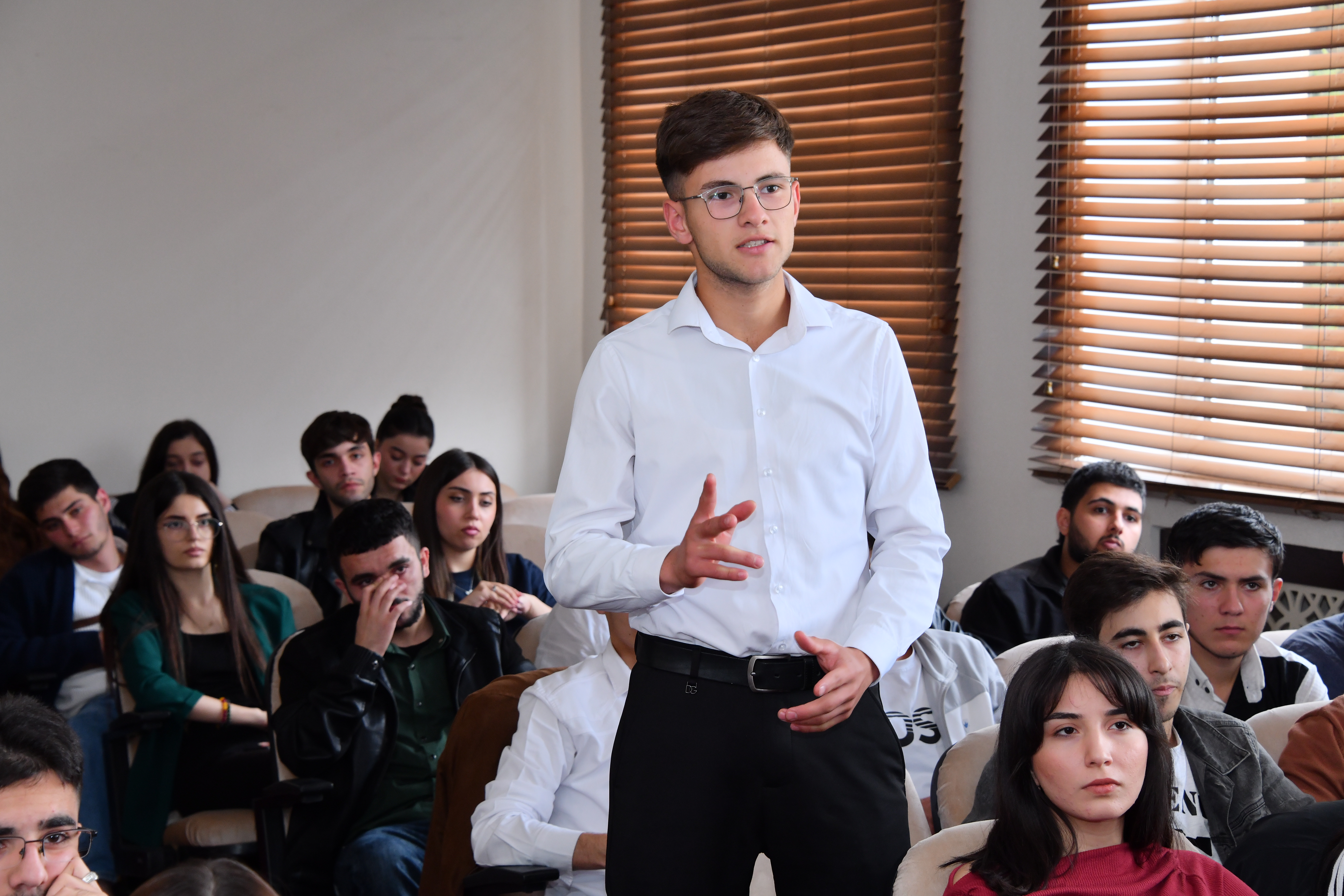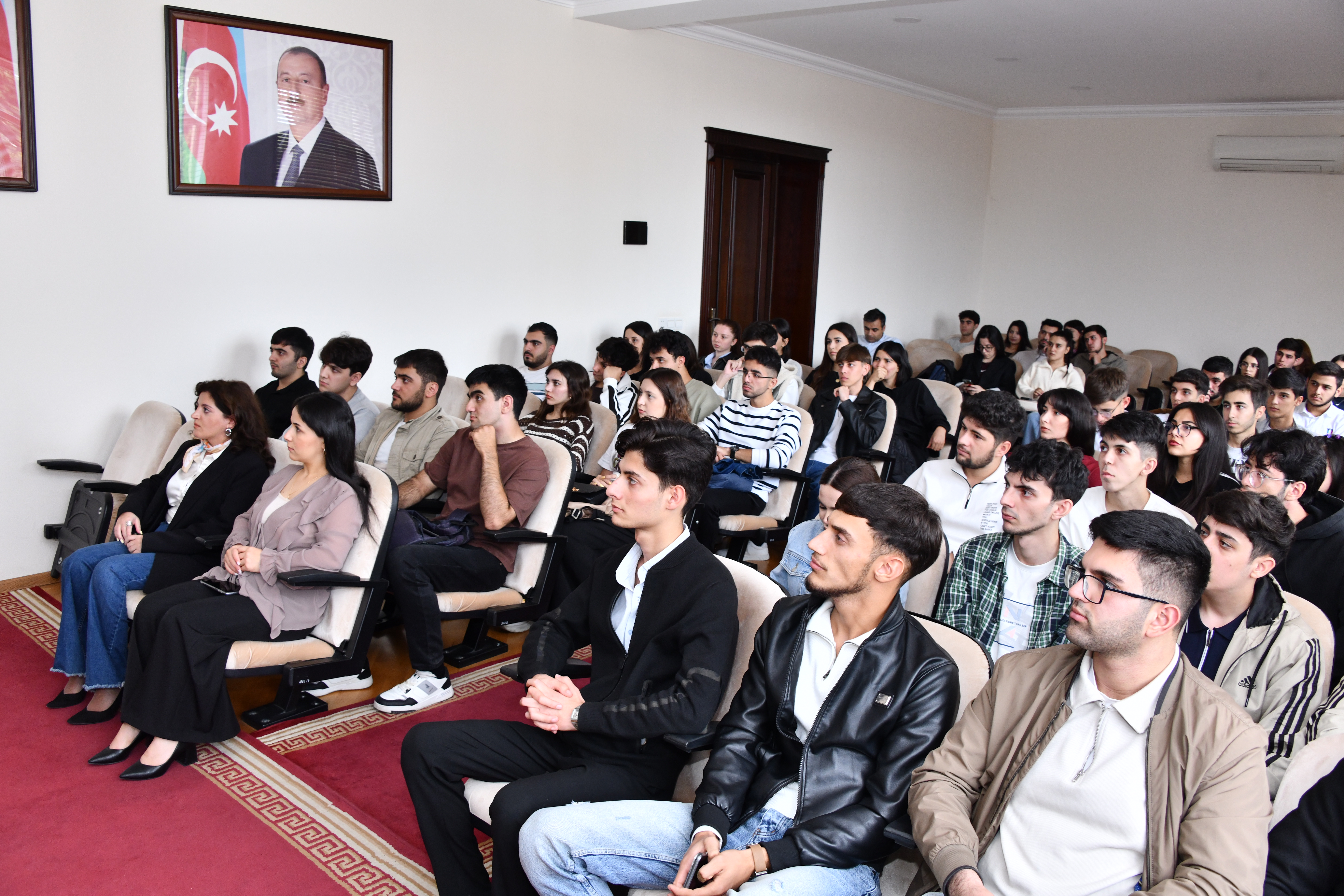 The event was opened by Vice-Rector for Science and Innovation, Associate Professor Elshad Abdullayev, who congratulated the students selected for Code Academy. He spoke about the importance of the project implemented by the Ministry of Science and Education in collaboration with Code Academy, emphasizing that students are provided with the opportunity to join the classes free of charge. Associate Professor Elshad Abdullayev advised students to continuously improve their knowledge and successfully complete the course with the highest results. Then, Shahriyar Mammadli, education manager of the Code For Future project, spoke and provided information about the academy's activities, educational programs, and opportunities created for students. He noted that the academy teaches students knowledge and skills that are relevant to the demands of the real labor market, which turns them into competitive and professional IT specialists in the future. He also mentioned the opportunity for free education in the specialties of "Artificial Intelligence-assisted Programming" and "Fundamentals of Cybersecurity". He emphasized the importance of students being more responsible in class and continuously developing their knowledge and skills. At the end of the event, a mutual exchange of views took place, and the questions asked by the students were answered by Shahriyar Mammadli.