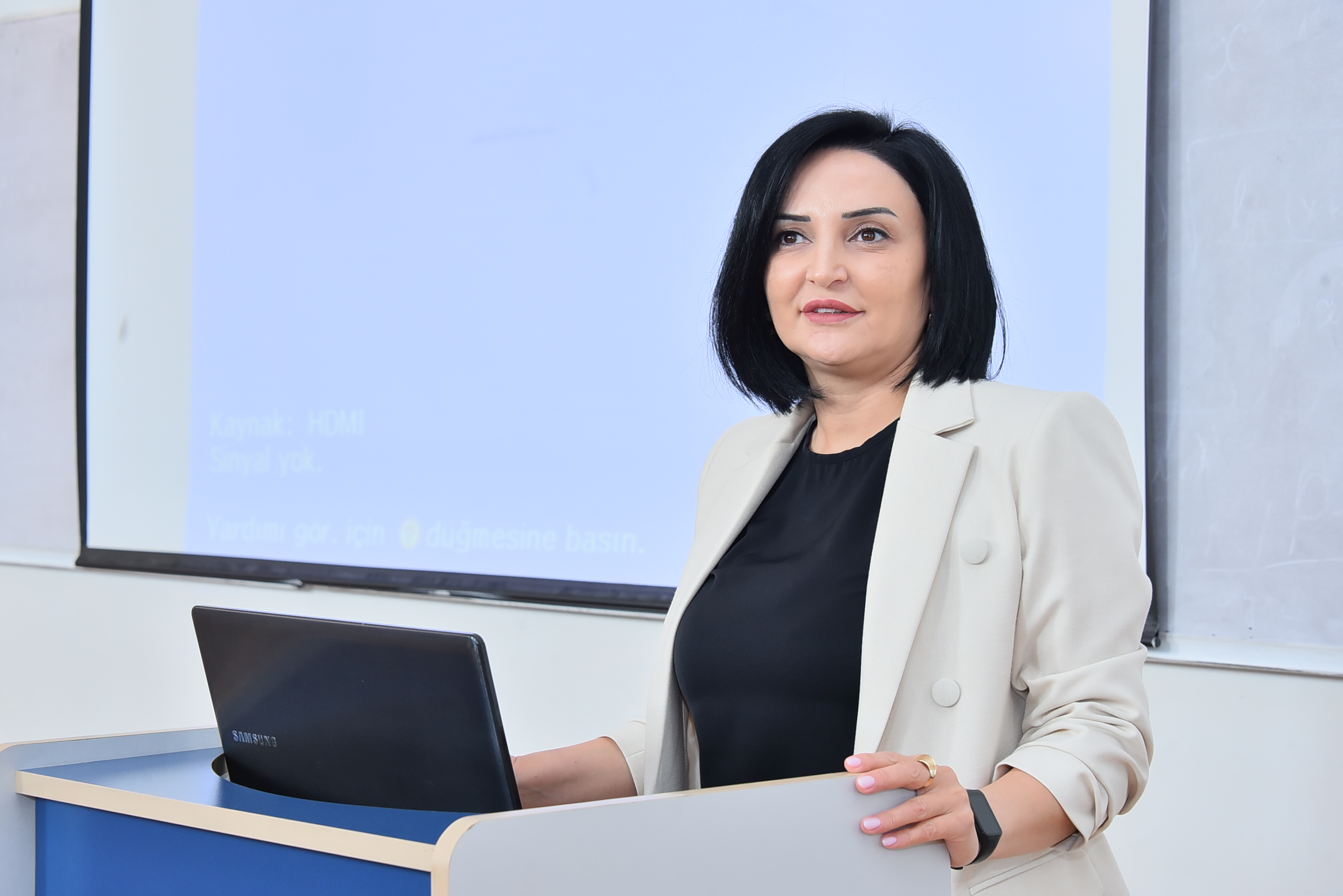 The event was organized to expand international scientific cooperation, learn headmost practices, and identify prospects for future joint projects. Opening the seminar, Dean of the Faculty of Mathematics, Associate Professor Khalida Hasanova expressed her deep gratitude to the university administration for the high-quality conditions created for the academic staff and students. She emphasized that Associate Professor Khayala Seyfullayeva's visit is of great importance for the faculty, noting that such international visits make a significant contribution to strengthening the scientific potential of the faculty, integrating teachers and researchers into the international academic environment, and expanding scientific cooperation. Then, Head of the Department of Mathematical Analysis and Differential Equations, Associate Professor Khayala Seyfullayeva welcomed the participants and spoke about the importance of the event. She informed about her recent business trip to Kazakhstan. She reported on her recent working visit to Kazakhstan. She noted that during the visit, she participated in meetings, scientific discussions and international events held at a number of leading higher education institutions in Kazakhstan. She spoke about modern teaching methods applied in Kazakh higher education institutions, the organization of scientific and research activities, and the experience of international cooperation at the doctoral and master's levels. Head of the International Cooperation and Strategic Projects Department, Aysel Eminova also spoke at the seminar and provided general information about the university's international cooperation areas. She spoke about cooperation mechanisms with foreign higher education institutions, joint projects and grant programs, as well as the strategic importance of relations with Kazakh universities.