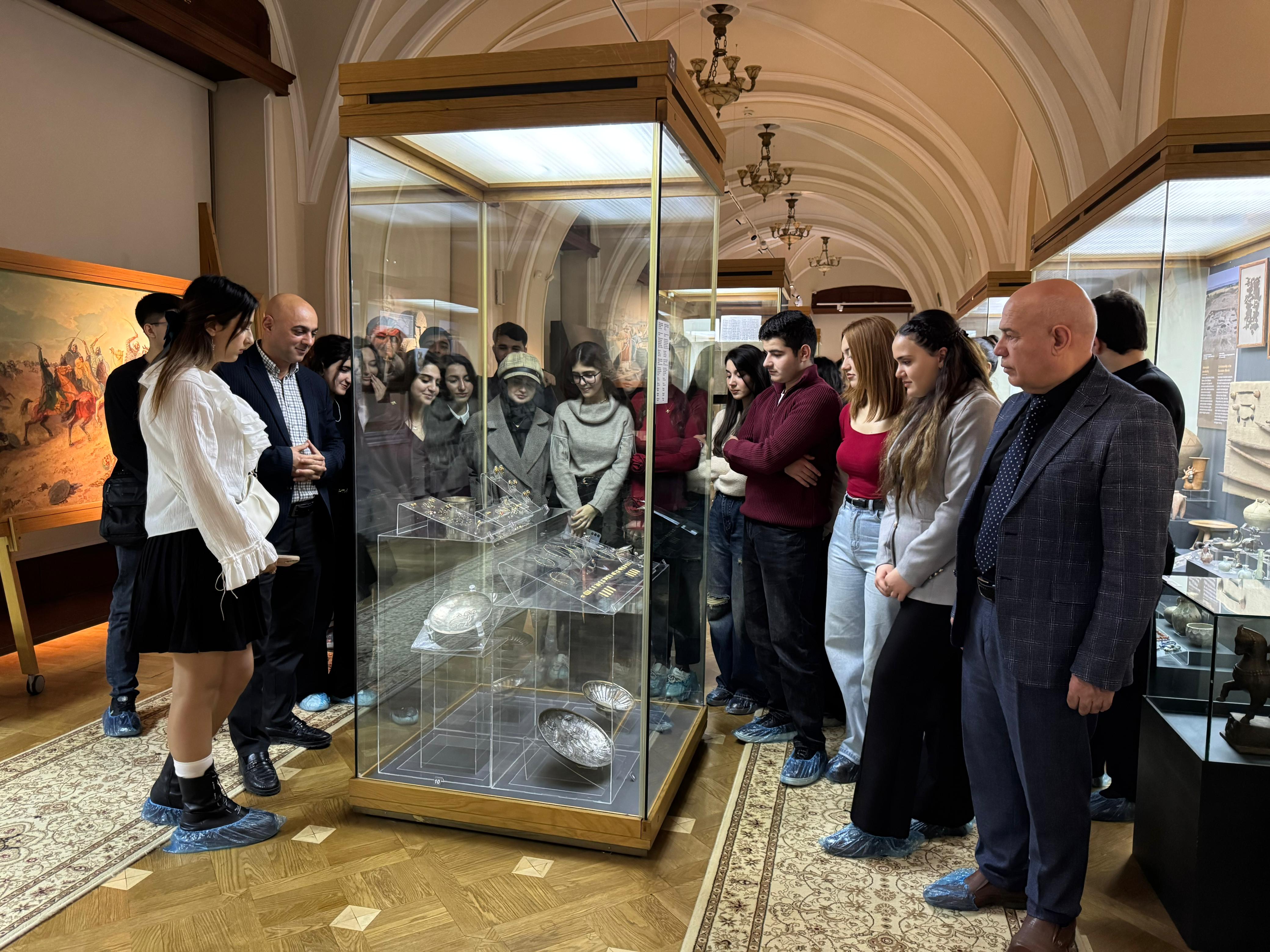 The students got acquainted with the various exhibition halls of the museum and obtained detailed information about the historical development path of our country from primitive times to the present day, statehood traditions, archaeological finds, examples of material and cultural heritage, and rare historical documents. The scientific staff of the museum provided interesting and comprehensive information about the historical and scientific significance of the exhibits, the process of their discovery, research, and preservation. In conclusion, the students emphasized that such educational events made a significant contribution to the formation of their scientific worldview, the growth of research interests, and the strengthening of the consciousness of national identity.