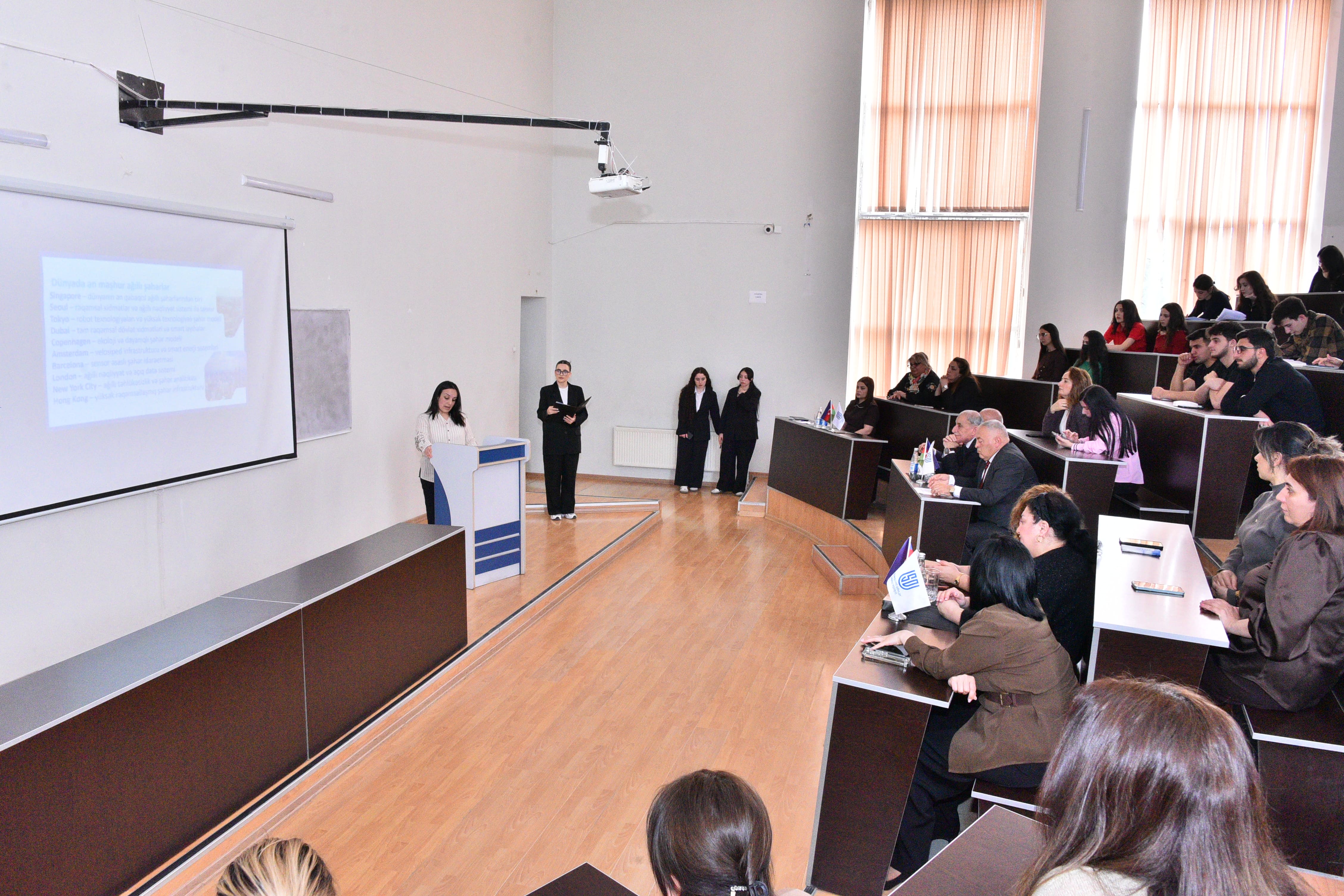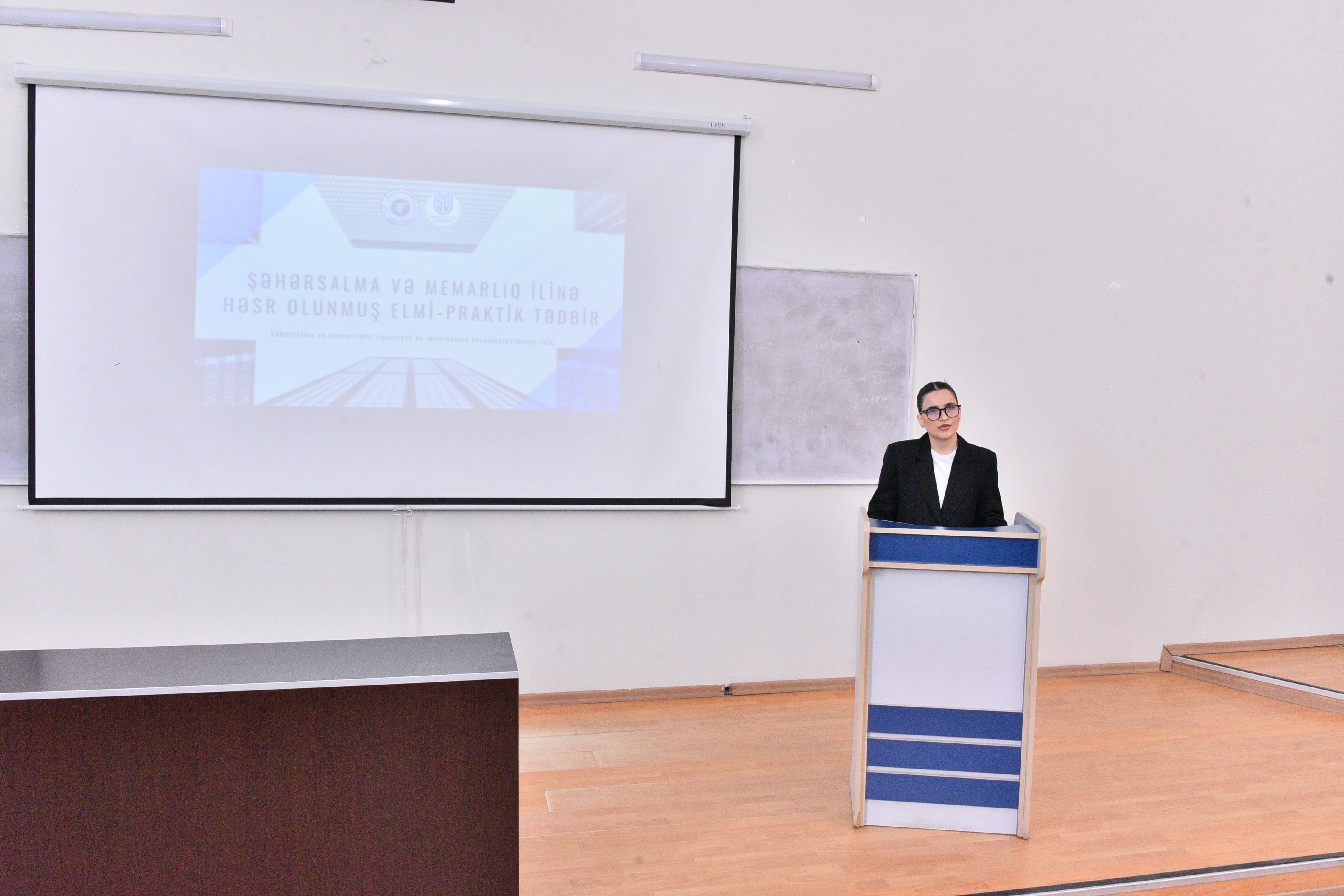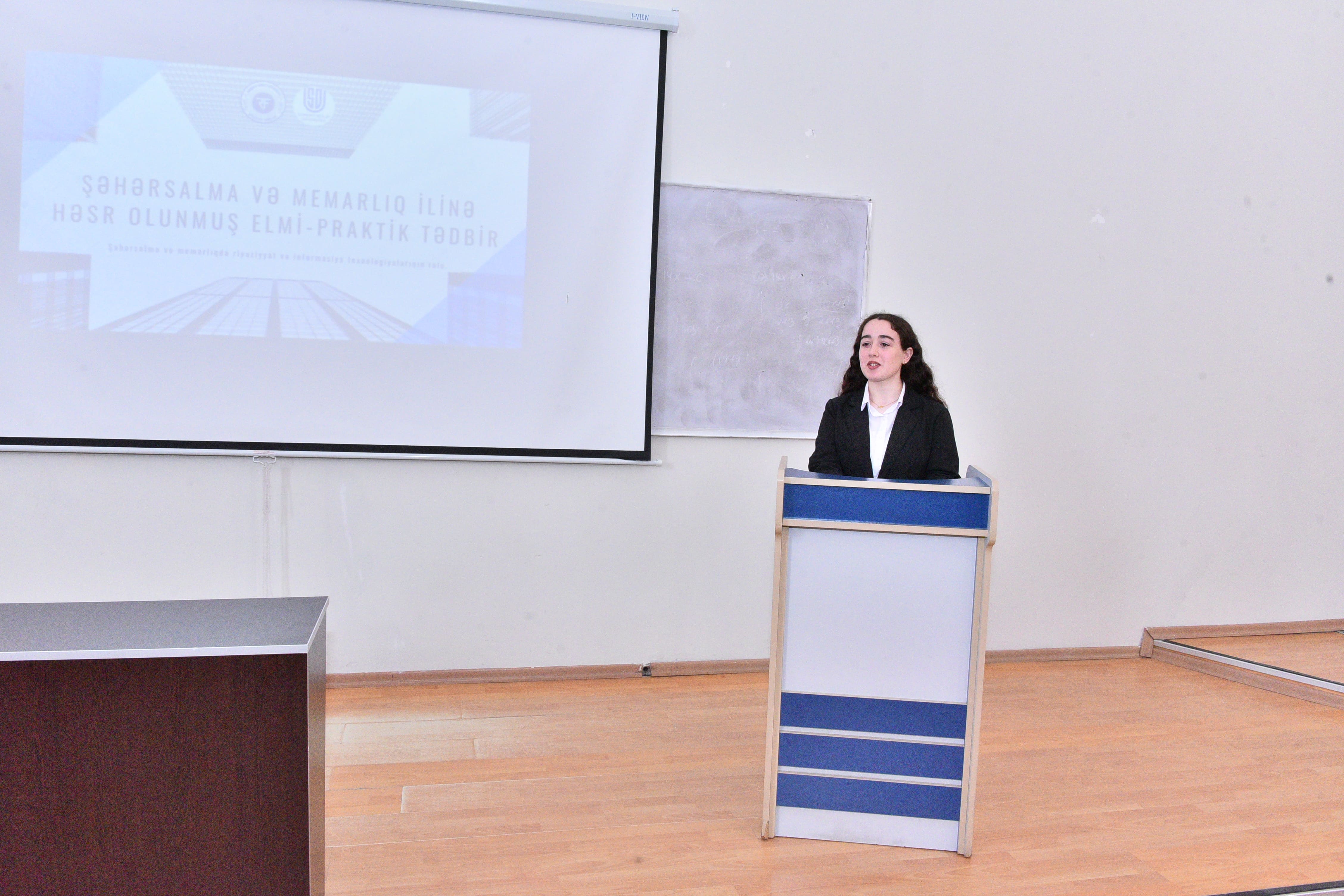 At the event, Dean of the Faculty of Mathematics, Associate Professor Khalida Hasanova delivered an opening speech and stated that in modern times, the dynamics of urban development, sustainable urbanization processes, efficient planning and the application of innovative architectural solutions are closely related to mathematical modeling, digital technologies and information systems. She spoke about the work carried out in this direction, scientific innovations and future development prospects, and drew attention to the fact that the topic of today"s event is of great relevance both from a scientific and practical point of view. Then, a video clip reflecting the development stages of Baku in 1930, 2026 and 2100 was shown at the presentation of Zarifa Samadzade, the chairwoman of the Faculty of Economics and Management. The presentation visually brought to the attention of the participants the historical development path of the capital and the prospects for urban development expected in the future. Senior lecturer of the Department of Mathematics and Informatics Teaching Technology, Sabina Gurbanova, and associate professor of the Department of Mathematical Analysis and Differential Equations, Ilgar Safarli made presentations on the topics of “Application of Information Technologies in Urban Planning” and “Mathematical Models in the Optimization of Urban Transport Systems”. In their speeches, they emphasized the important role of smart city models and modern software in urban management, their real application possibilities in urban planning, the efficient organization of urban transport, optimal regulation of traffic flow, as well as the importance of mathematical models in improving logistics processes. Chairwoman of the Faculty of Architecture and Urban Planning, Chinara Osmanova delivered a speech on the topic “An Architect from the Future”. At the end of the event, an interesting exchange of views took place on the topic, and proposals were put forward regarding the application of mathematics, innovative approaches and information technologies in the field of urban planning and architecture.