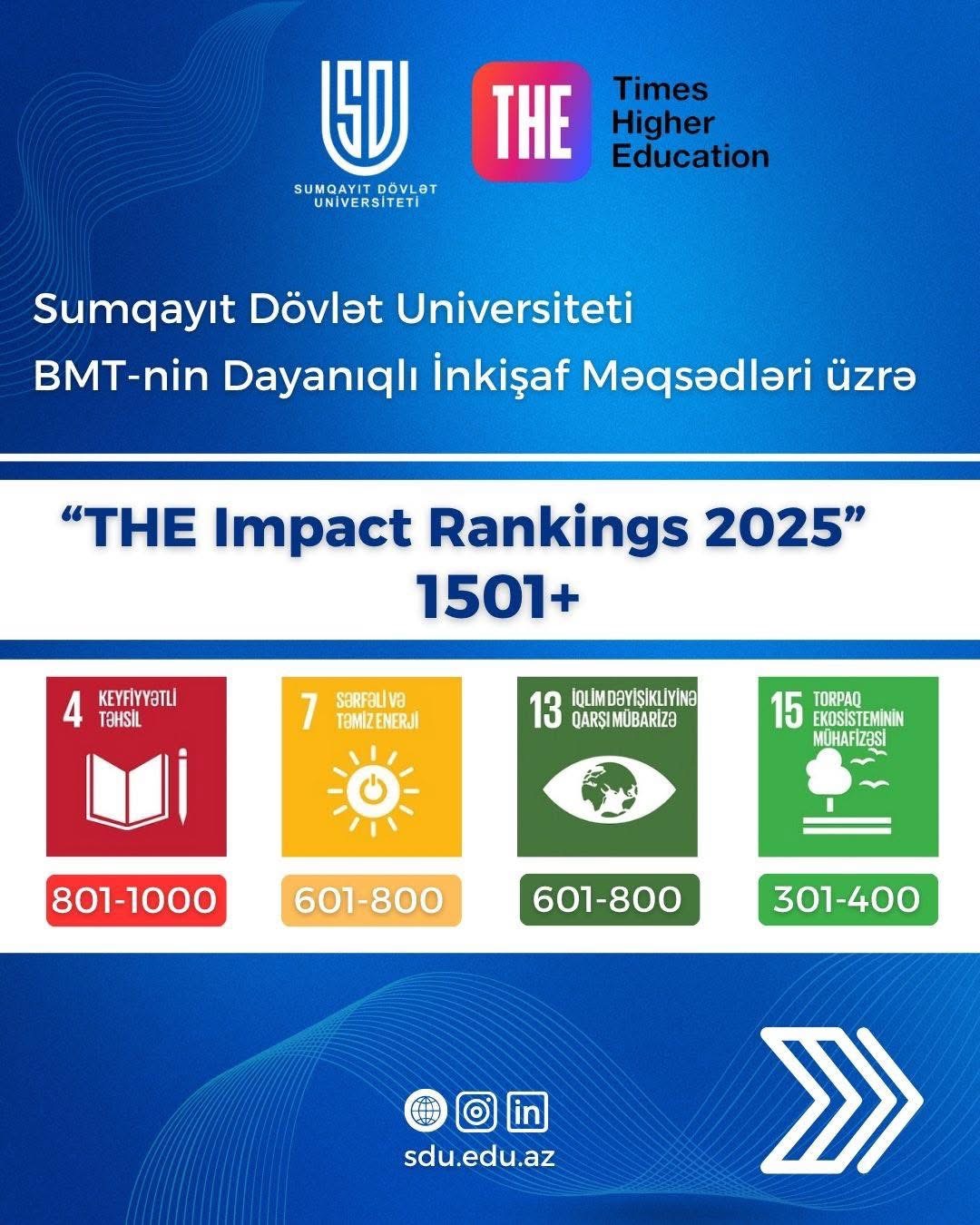 Sumgayit State University has participated for the first time in the prestigious Times Higher Education (THE) Impact Rankings 2025 and has secured a position in the 1501+ band among the world’s ... Read more
